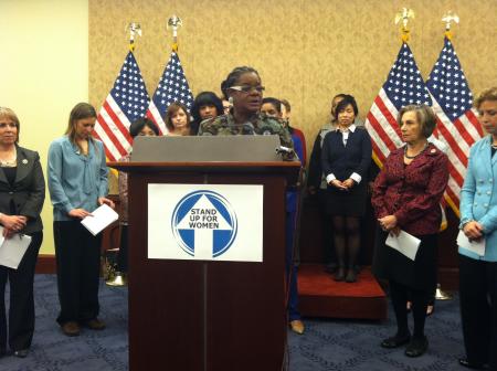 Gwen stands up for women at anti-Ryan budget Democratic women press conference.